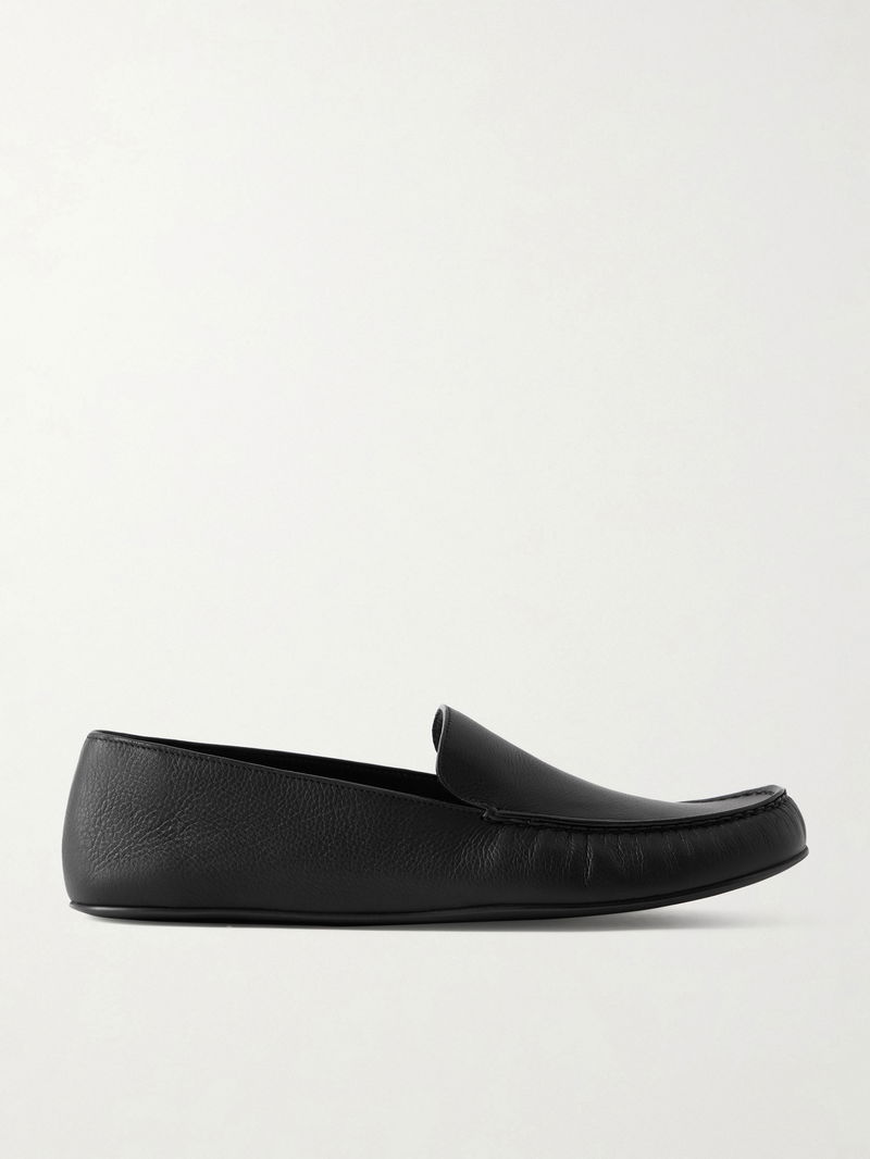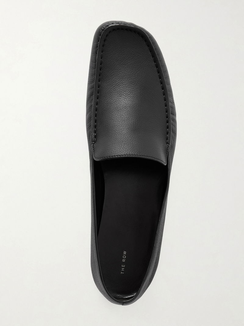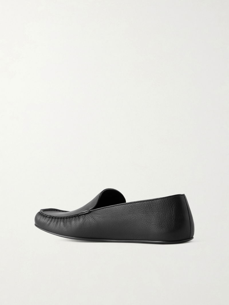 The Row's 'Leo' loafers are modeled on classic driving shoes. Made in Italy from black textured-leather, they're traced with tonal topstitching.
