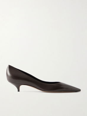 Grained lambskin heels in black. · Pointed toe · Pin-buckle ankle strap· Logo stamp at footbed· Covered stiletto heel with rubber injection · Leather sole·