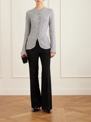 A deep affection for refined and timeless fashion influences The Row's dedication to craftsmanship and quality. The Lila top is knitted from grey cashmere into a fitted, short-sleeved silhouette with a semi-sheer finish.