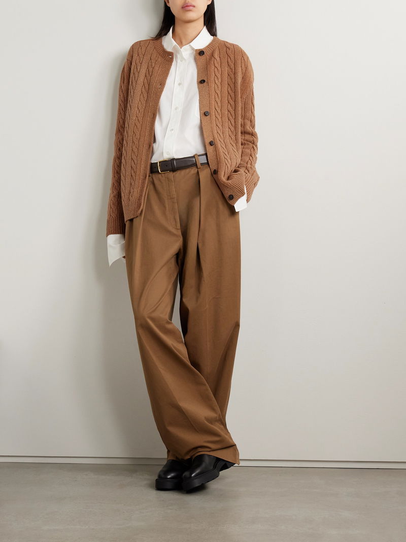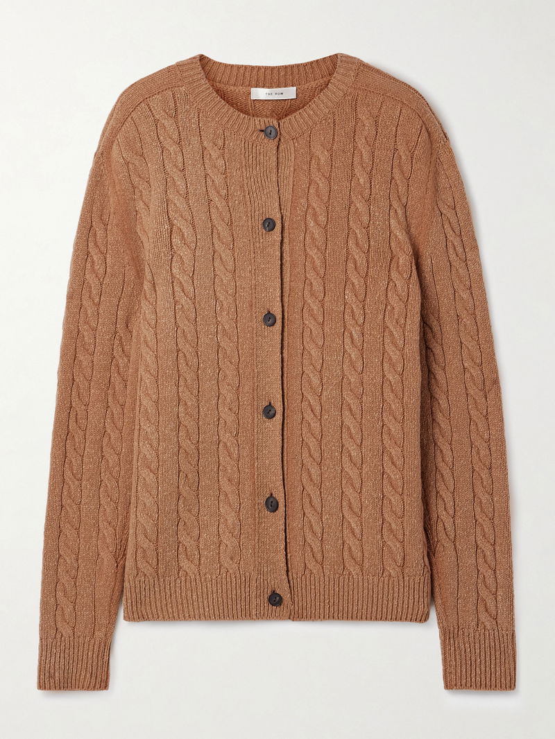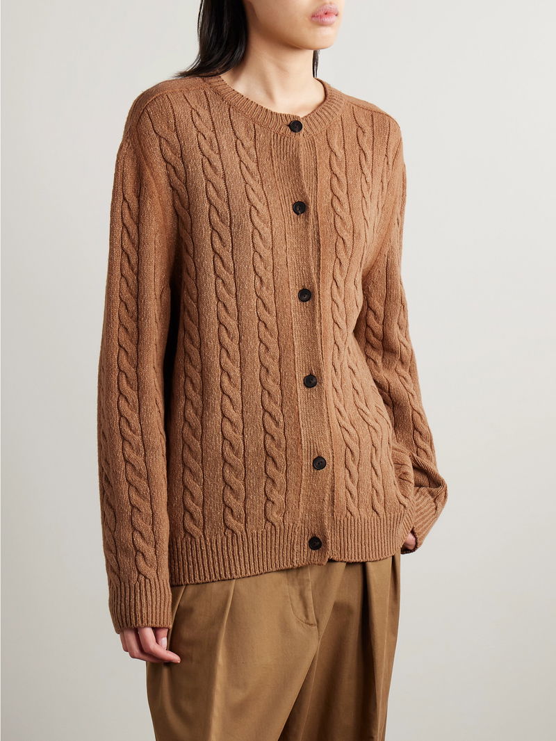 The Row’s collections consistently highlight sumptuous knitwear, a hallmark of the brand’s understated luxury. This 'Loneke' cardigan has been made in Italy from wool using a classic cable stitch for a textural finish. It has ribbed trims defining the relaxed fit.