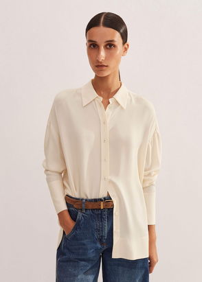 Sanded silk broadcloth shirt.· Spread collar· Button closure· Shirttail hem · Single-button barrel cuffs· Mother-of-pearl hardware.
