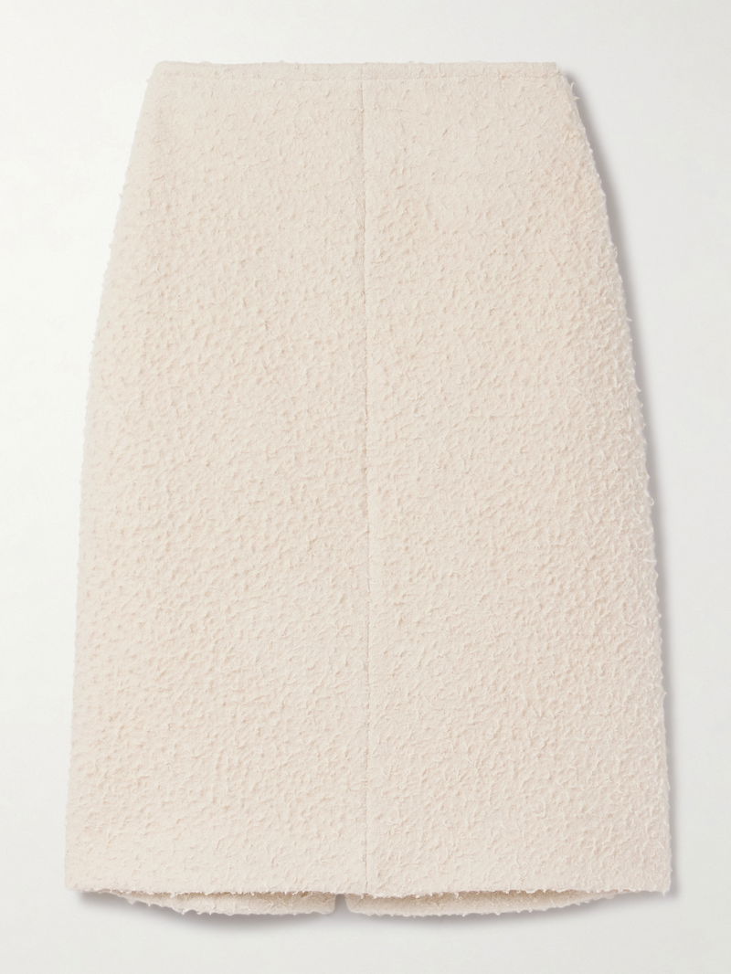 The Row's 'Malva' skirt is made from wool and llama-blend with a tactile, brushed finish. Simple and sophisticated, it's tailored for a slim fit and has a slit at the back for comfortable movement. Style it as part of a tonal outfit.