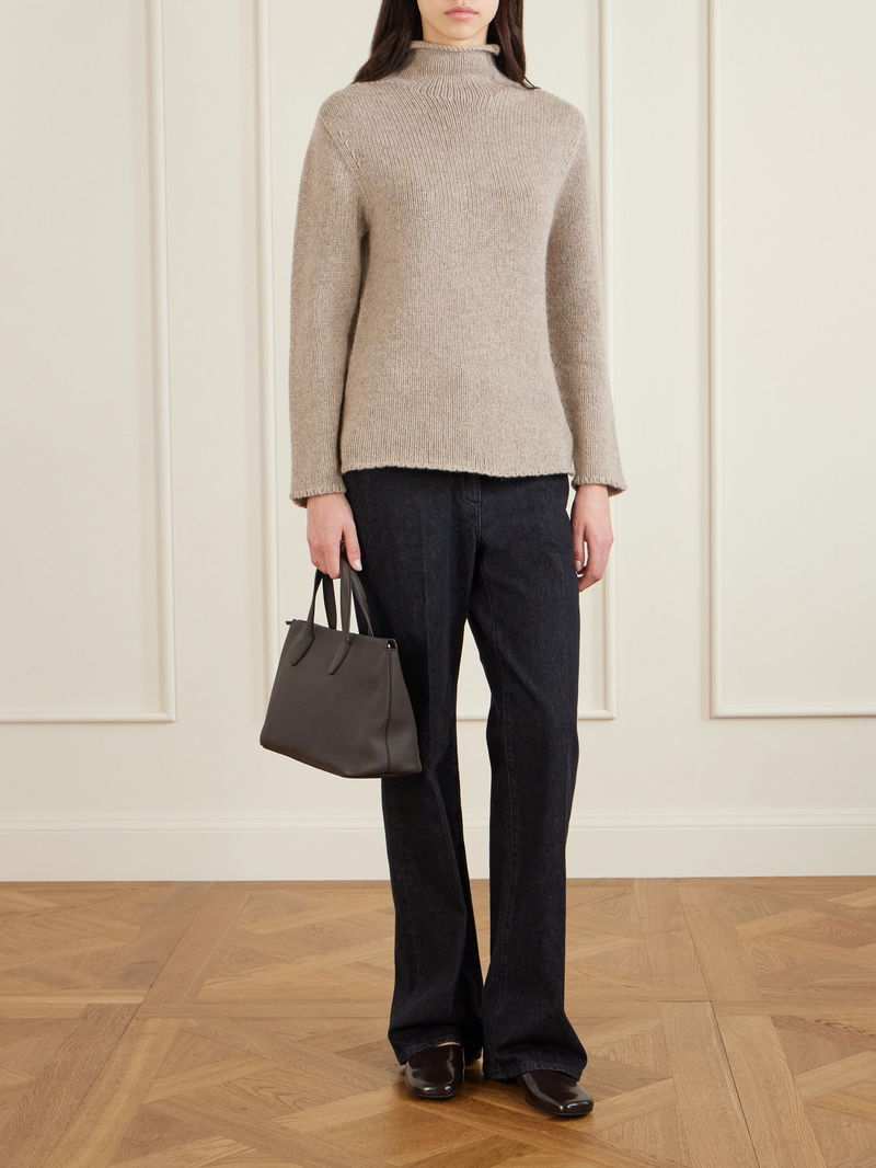 The Row's 'Marcel' tote has a softly structured shape that dimples at the sides. It's made from textured-leather with minimal detailing and is sized to fit a practical amount - think a book, scarf and water bottle.