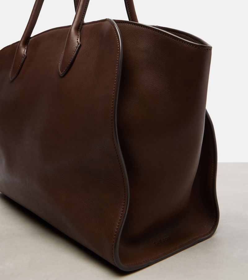 A deep affection for refined and timeless fashion influences The Row's dedication to craftsmanship and quality. The Marlo 14 tote bag is crafted from supple leather and features a spacious, softly structured silhouette with gusseted side panels and tubular handles.