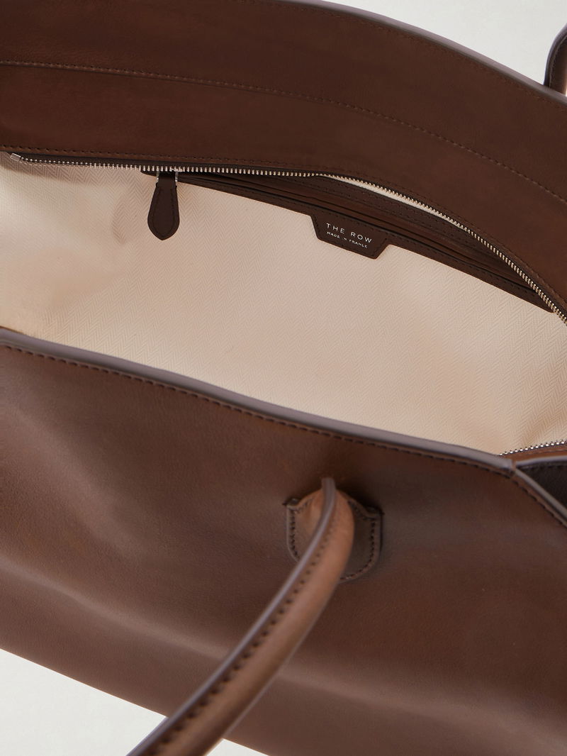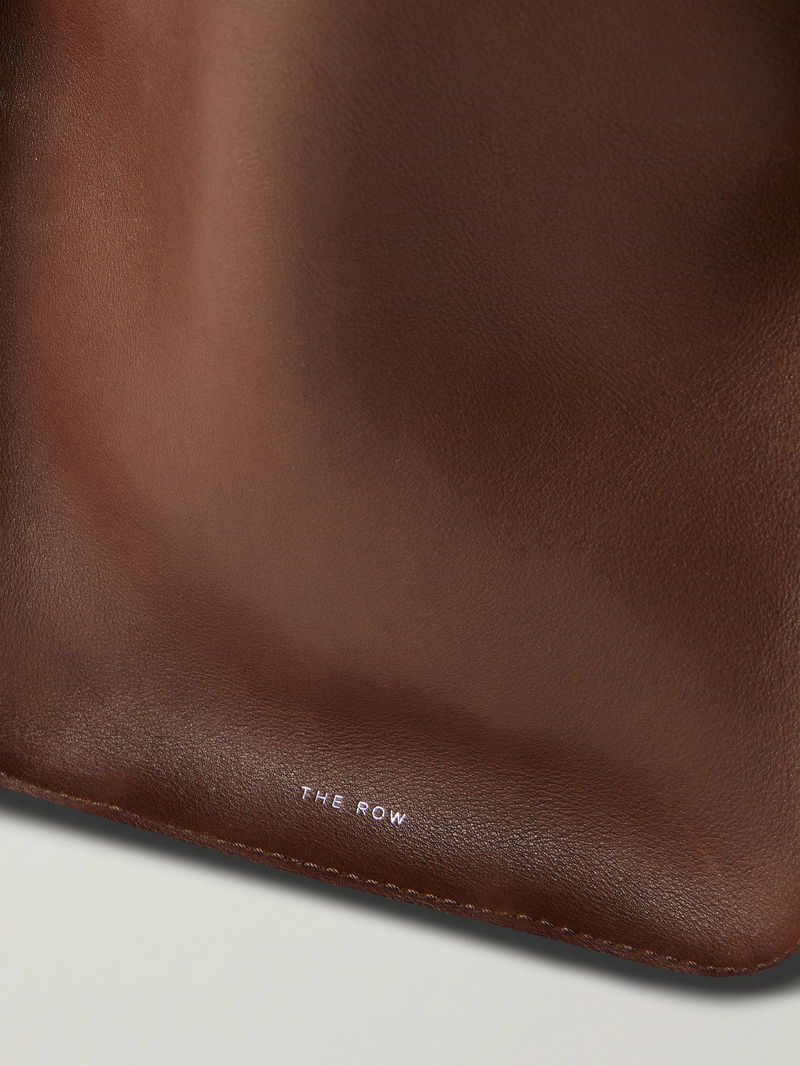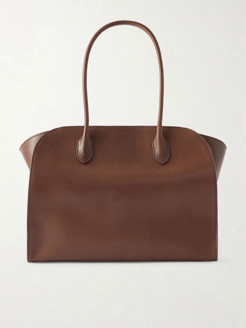 The Row's 'Marlo' tote is modeled on the brand's iconic 'Margaux' style. Made in Italy from brown textured-leather, it has the same rounded shape with expandable sides and plenty of space inside for your phone, wallet, sunglasses and planner.