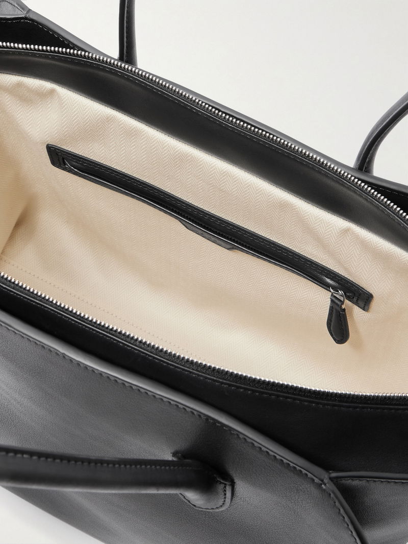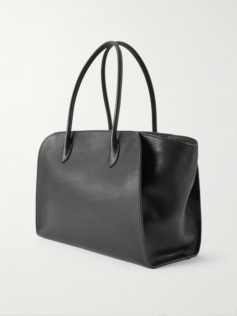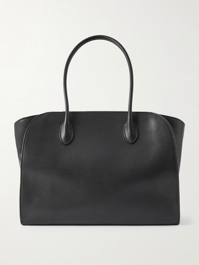 The Row's 'Marlo' tote is modeled on the brand's iconic 'Margaux' style. Made in Italy from black textured-leather leather, it has the same rounded shape with expandable sides and plenty of space inside for your phone, wallet, sunglasses and planner.