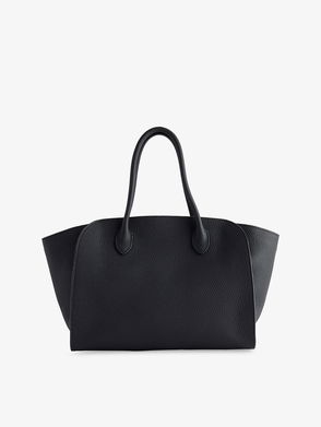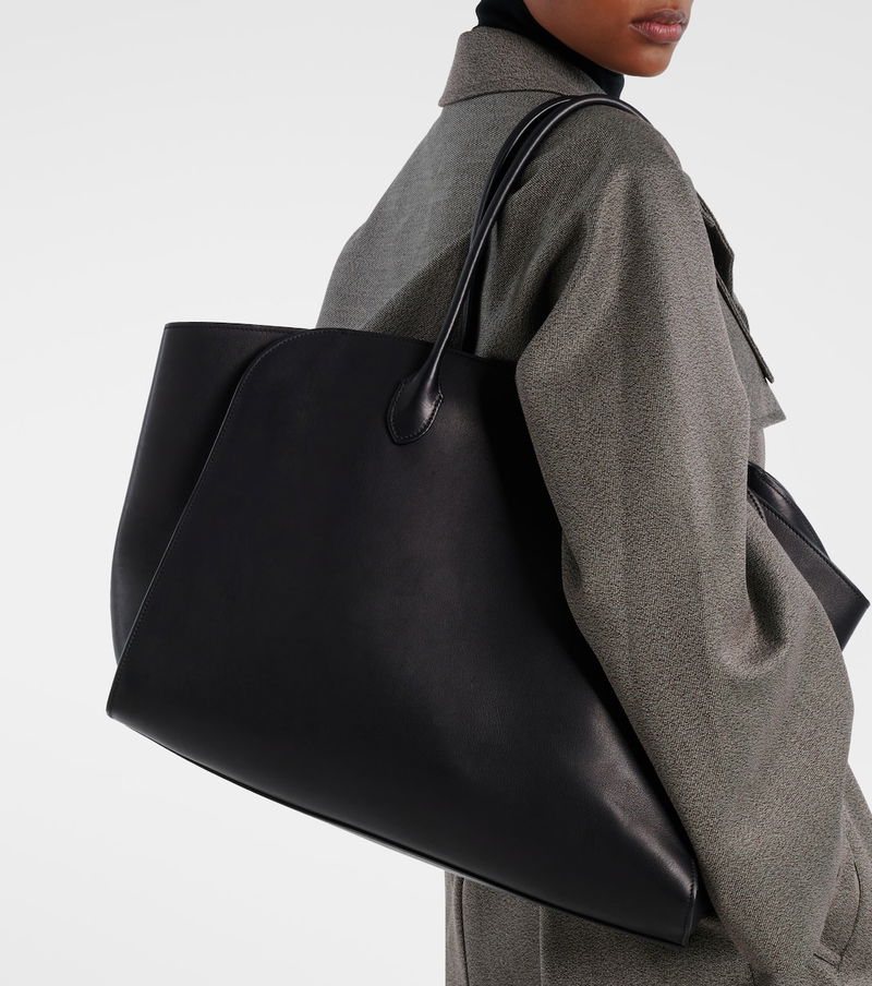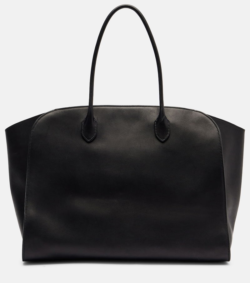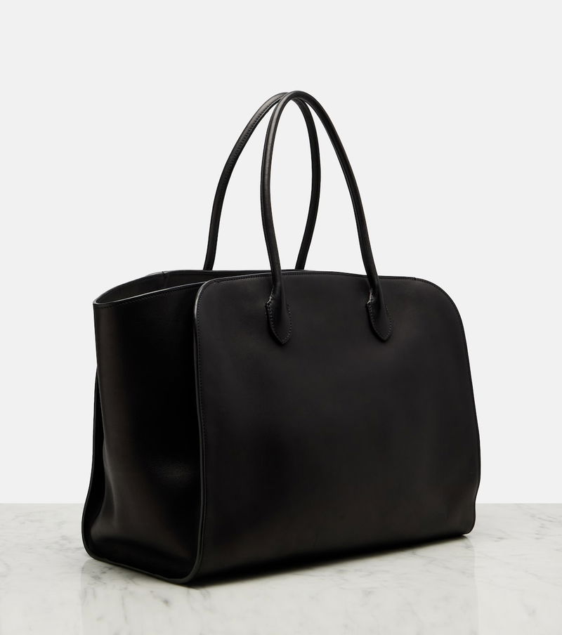 A deep affection for refined and timeless fashion influences The Row's dedication to craftsmanship and quality. The Marlo 17 tote bag is crafted from supple leather and features a spacious, softly structured silhouette with gusseted side panels and tubular handles.