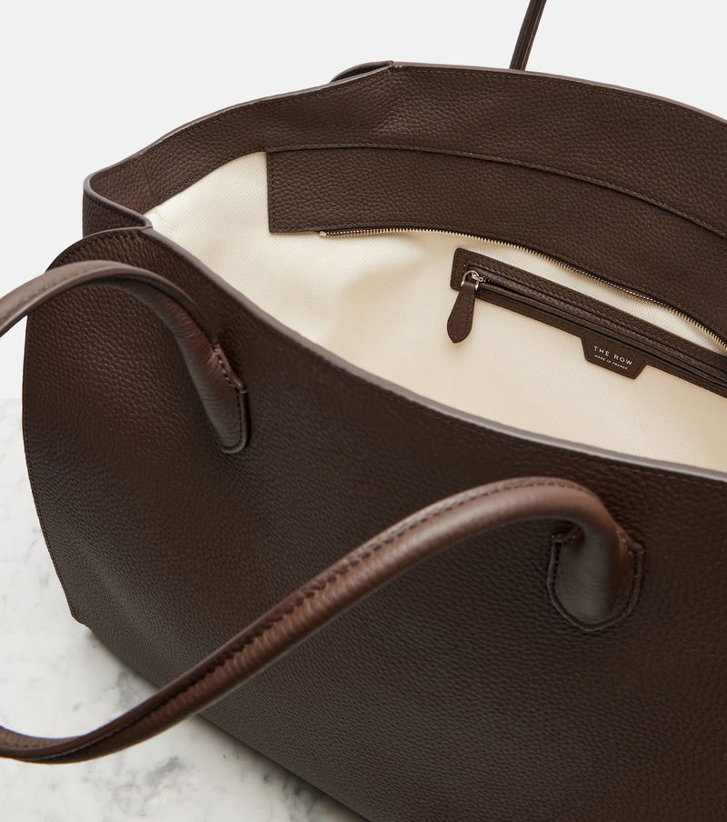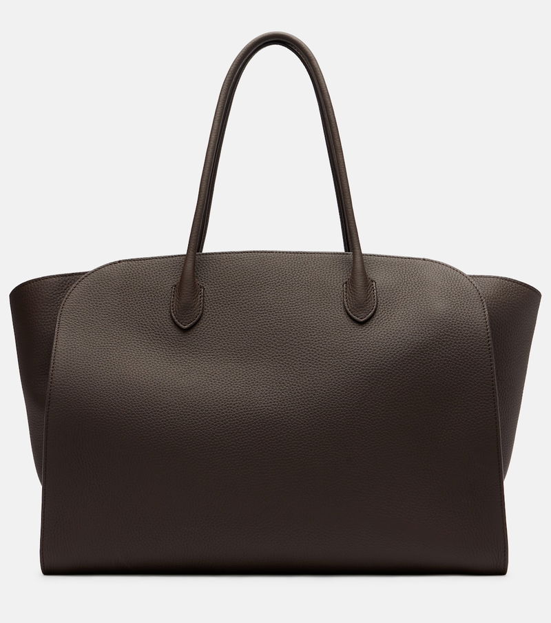 A deep affection for refined and timeless fashion influences The Row's dedication to craftsmanship and quality. The Marlo 17 tote bag is crafted from supple leather and features a spacious, softly structured silhouette with gusseted side panels and tubular handles.