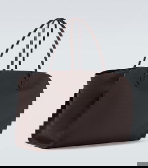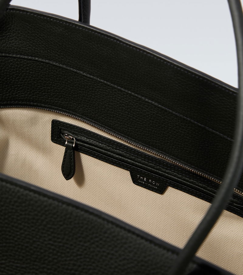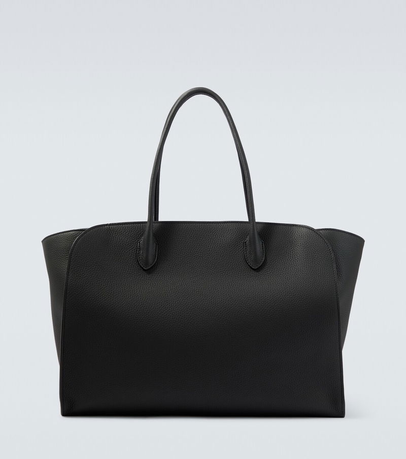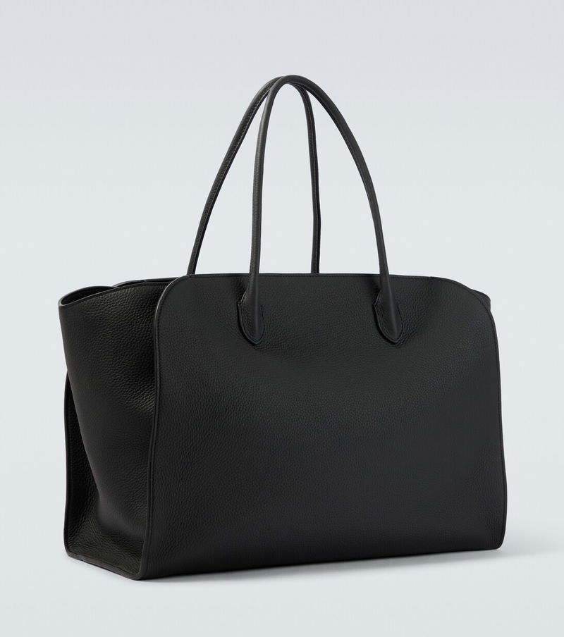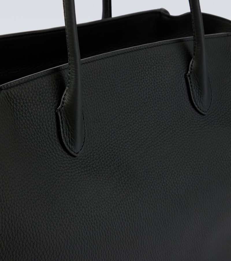 A deep affection for refined and timeless fashion influences The Row's dedication to craftsmanship and quality. The Marlo 17 tote bag is crafted from supple leather and features a spacious, softly structured silhouette with gusseted side panels and tubular handles.