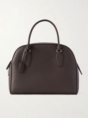 The Row's 'Marlo 17' tote is modeled on the brand's iconic 'Margaux' style. Made in Italy from dark-brown textured-leather, it has the same rounded shape with expandable sides and plenty of space inside for everything you need for an overnight trip - think change of clothes, water bottle and toiletries.