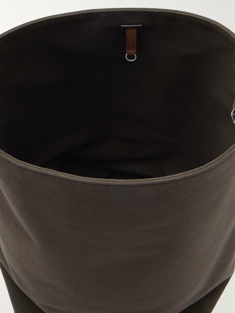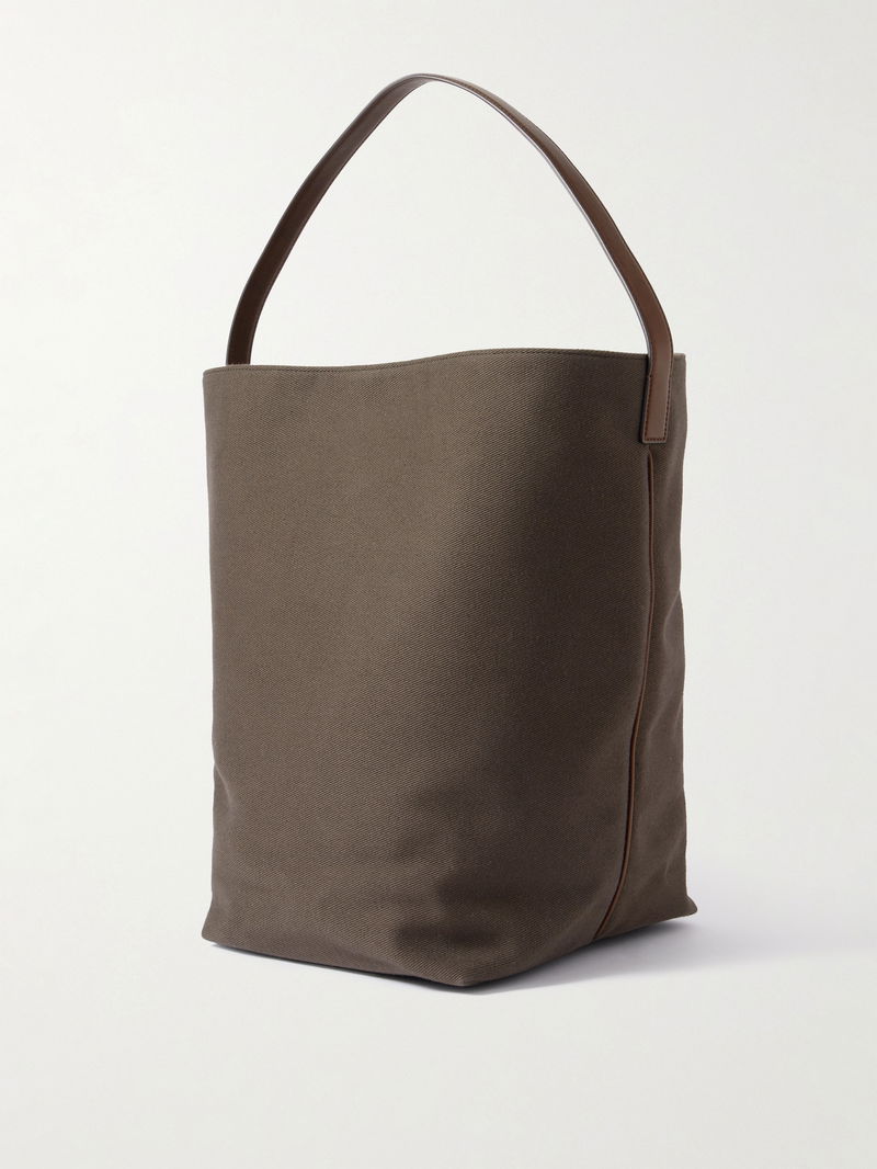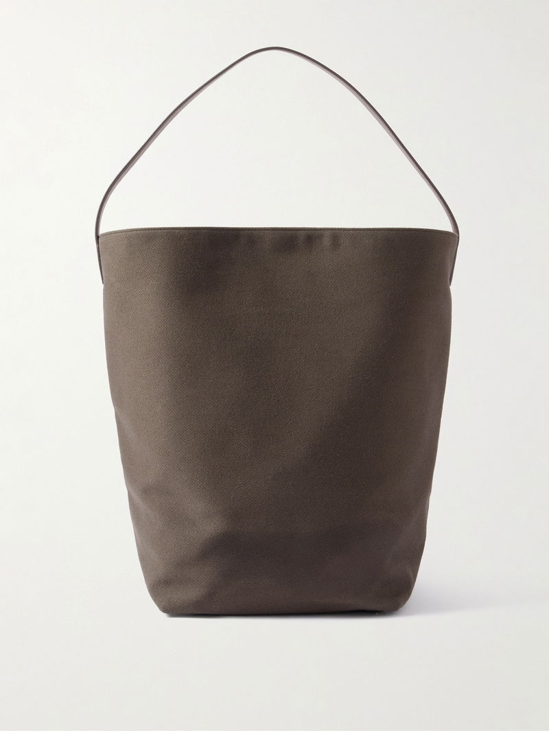 The Row's 'N/S' tote will soon become a signature accessory in your collection. It has been crafted in Italy from cotton-twill with a leather strap and trim. This large, bucket-shaped iteration has roomy proportions that'll fit a spare layer, phone and beauty kit.