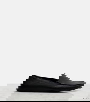 Buffed calfskin loafers in black. · Hand-stitched detailing at moc toe· Buffed leather lining· Rubber sole.