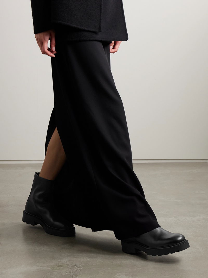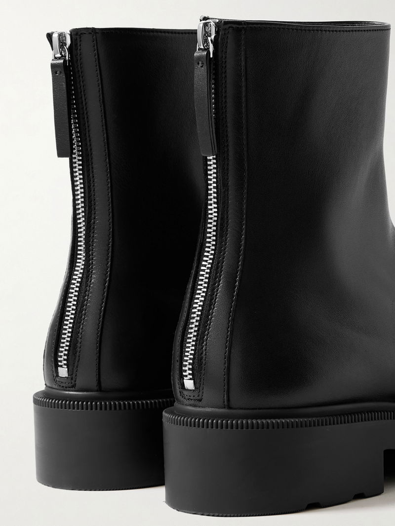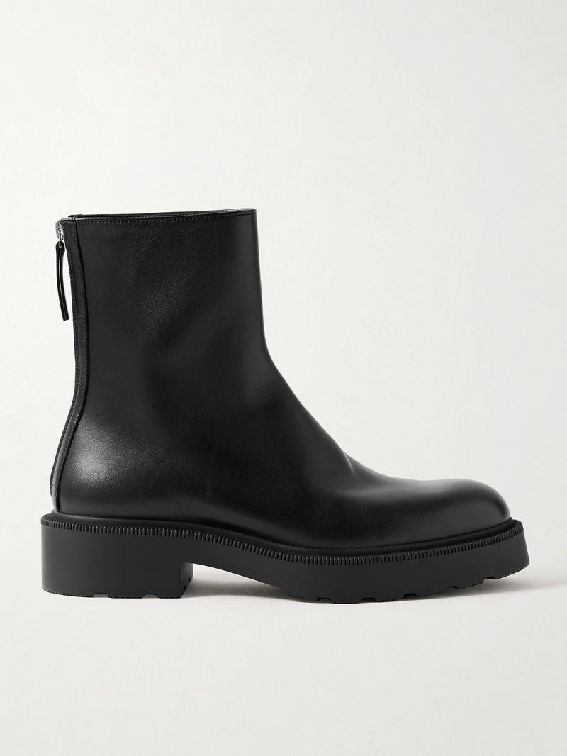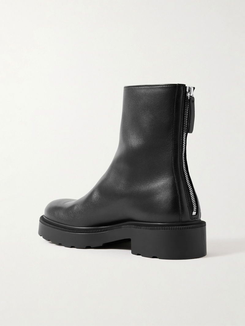 The Row's 'Nobilis' ankle boots have a minimalist design that makes them easy to style. They're crafted from black leather and have classic round toes and chunky rubber soles.