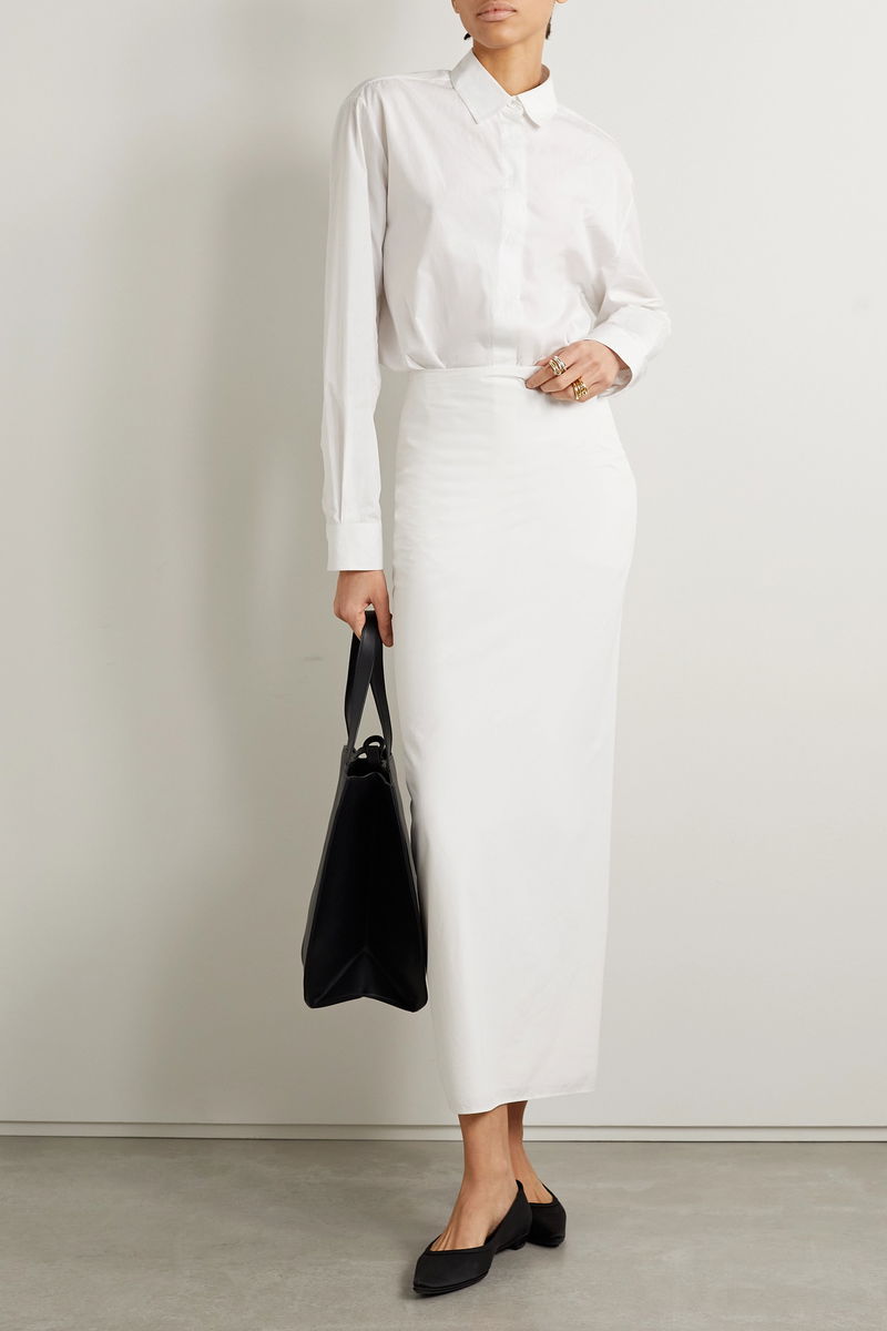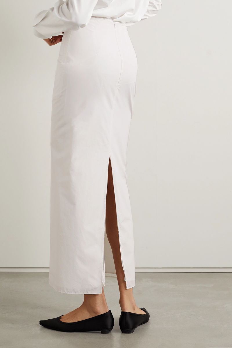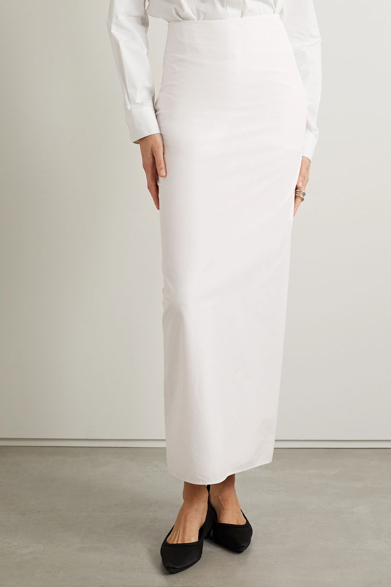 The Row's 'Ryon' skirt is cut from breathable cotton in a figure-hugging pencil silhouette. It's designed to sit high on the waist and falls to an ankle-grazing hem that's split at the back for comfort.