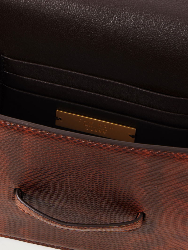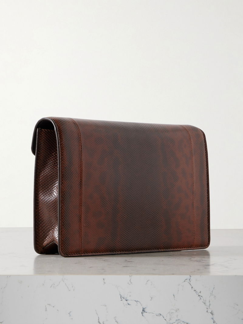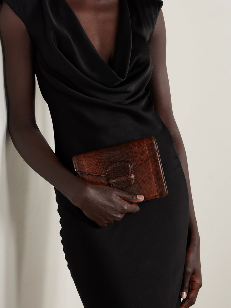 You'll find yourself reaching for The Row's sleek yet spacious clutch often. Crafted from burnt-orange snakeskin, it has a rectangular shape and is sized to hold your keys, cards and a compact.