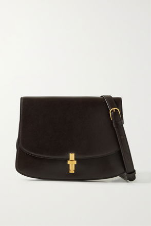 The Row's accessories echo the unmistakable minimal lines and luxurious fabrics of the brand's clothing. This 'Sofia' bag has been made in Italy from smooth brown leather with a flip-lock fastening and an adjustable shoulder strap. It may be compact, but there's enough space inside for essentials like your phone, cardholder and lipstick.