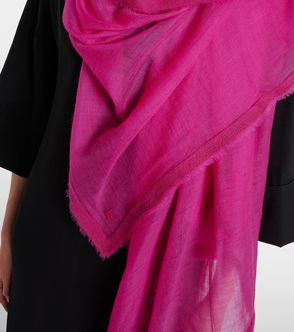 It's spun from lightweight wool, cashmere and silk-blend and has frayed edges. Drape it across your shoulders or neck.