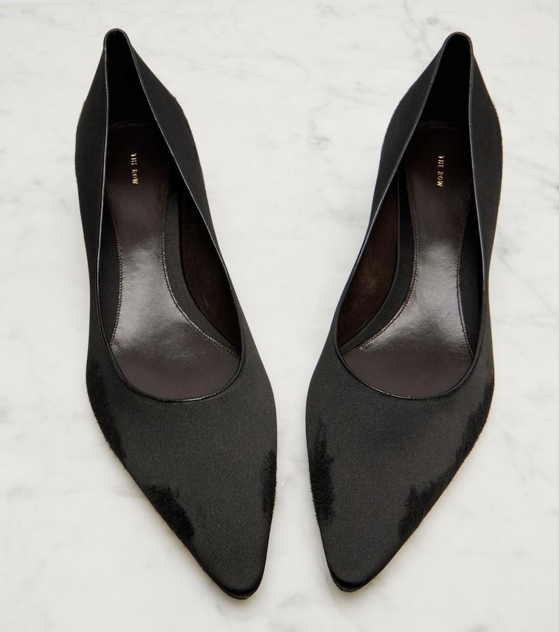 A deep affection for refined and timeless fashion influences The Row's dedication to craftsmanship and quality. Made from black satin, the Uxor pumps are set atop kitten heels and feature sophisticated pointed toes.