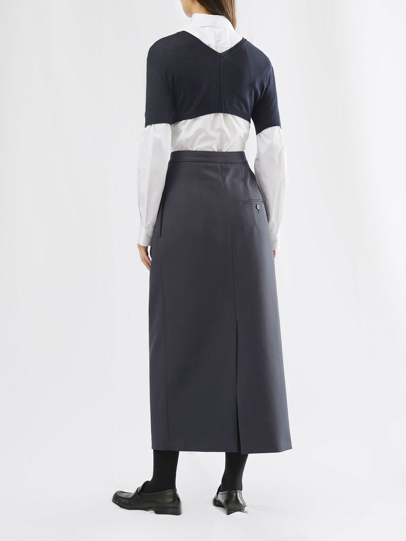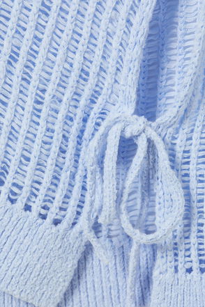 Knitted as a considered layering piece on The Row’s Resort 2023 runway, this navy Vic short-sleeved sweater is cut with a cropped hem.