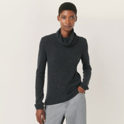 Our high-quality pure cashmere funnel-neck black jumper is the ideal layer for daytime dressing with a contemporary feel. With premium touches such as rolled edges on the cuffs this super-soft knit is a great standby for both monochrome and tonal styling.