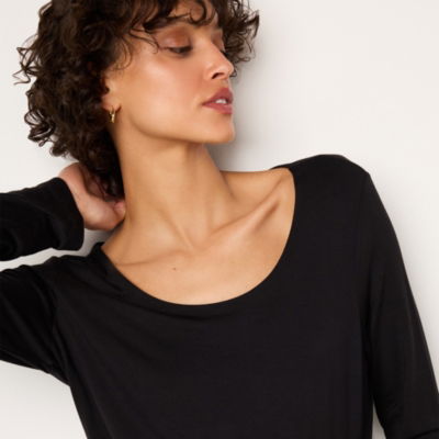 Designed with quality practicality and effortless style in mind our ultimate double-layer T-shirt is made from silky-soft TENCEL Modal fibres with added stretch for a flattering slim fit with a hint of structure thanks to the double layering. With a simple wide round neck and full-length sleeves that can be easily ruched up it pairs well with denim and midi skirts.