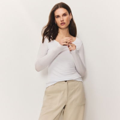 Designed with quality practicality and effortless style in mind our ultimate double-layer T-shirt is made from silky-soft TENCEL Modal fibres with added stretch for a flattering slim fit with a hint of structure thanks to the double layering. With a simple wide round neck and full-length sleeves that can be easily ruched up it pairs well with denim and midi skirts.