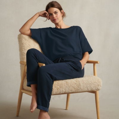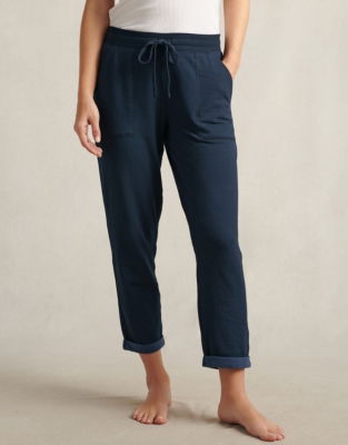 Stylish tapered joggers have a super-soft fleecy inner lining which feels wonderfully lightweight. Great for going to and from the gym they have turn-back cuffs for a sporty feel and the ribbed jersey waistband is flattering and supportive.