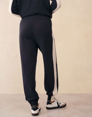 A sporty wide leg trousers that's incredibly comfortable for all-day wear whether you're out and about or having a relaxing indoors type of weekend. We've kept this style simple easy and flattering with a sports-luxe feel. Think elasticated waist with internal drawstring ties a straight drop to the ankle and double stripes down the side hems.