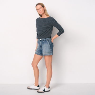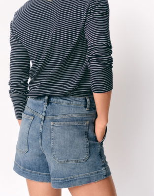 A classic style designed to be your go-to for weekends and beach days our organic-cotton-denim shorts are easy to pair with oversized linen shirts and sandals at the seaside or plain tees and trainers on family days out. We love how they're made with a little added stretch for lasting comfort.
