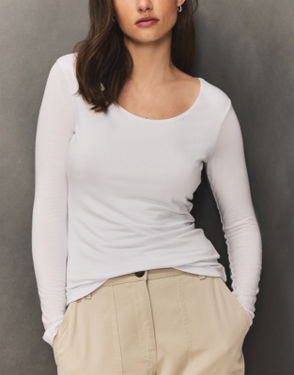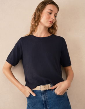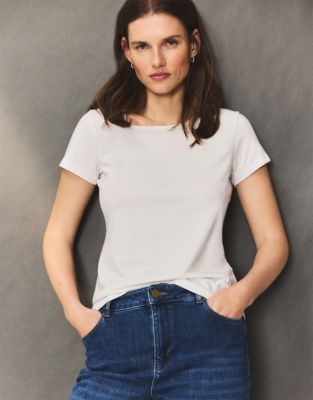Designed with quality practicality and effortless style in mind our short-sleeve T-shirt is made from super-soft organic cotton and is an everyday staple. With a simple crew neck and short lightly angled sleeves it has a slim fit and flattering length falling below the hip. Pair with simple denim or layer with tailored trousers and skirts.