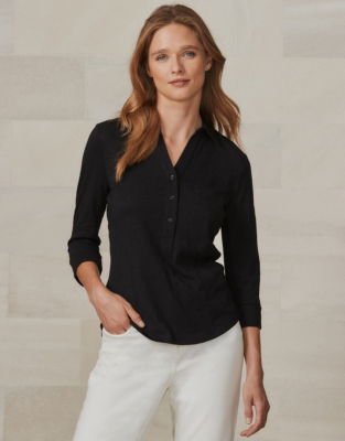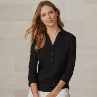 We've updated our bestselling organic-cotton jersey shirt so it now has a wider statement placket and front pocket. A wardrobe hero you'll turn to again and again this design features with three-quarter-length sleeves and ribbed pocket detailing.