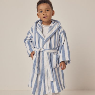 A perfect year-round option to wrap-up in post-bath. Our robe is made from pure-organic cotton with a plush terry towelling finish. Covered in pink and white stripes it's got a tie waist handy side pockets and a hooded neckline to make them feel nice and snug.