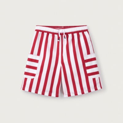 Pair with our rash guard Featuring red-and-white stripes our swim shorts are great for poolside and beach adventures. They've got an elasticated waistband for easy speedy dressing - perfect for when little ones are eager to jump in and splash around. Plus they have UPF 50+ protection against the sun. Pair with our rash guard to complete the look.