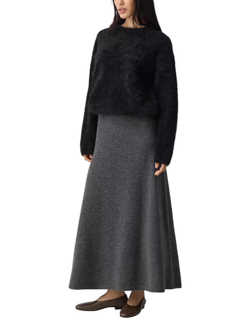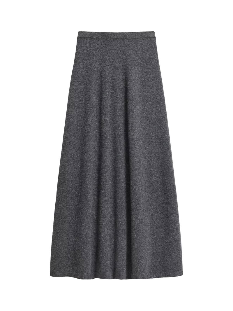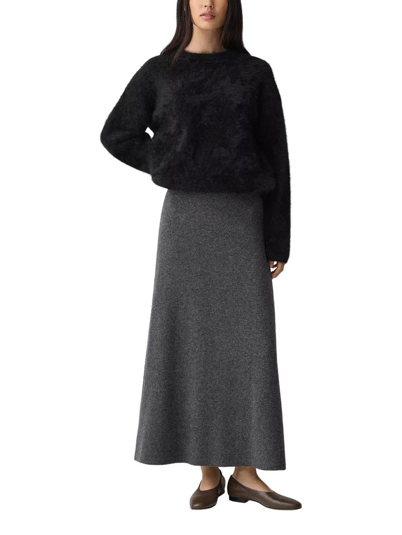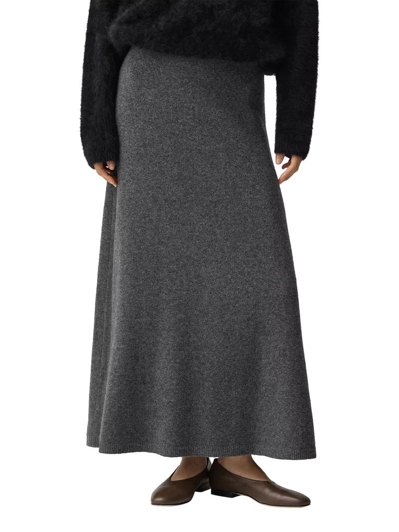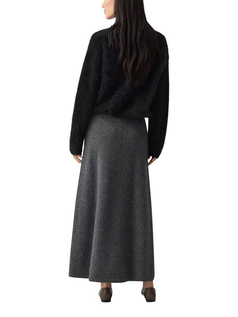 Designed with a pull-on waistband, this skirt falls to a full-length silhouette with fluid ease. The subtle A-line shape balances structure and movement, making it a versatile foundation for sweaters or tailoring alike.