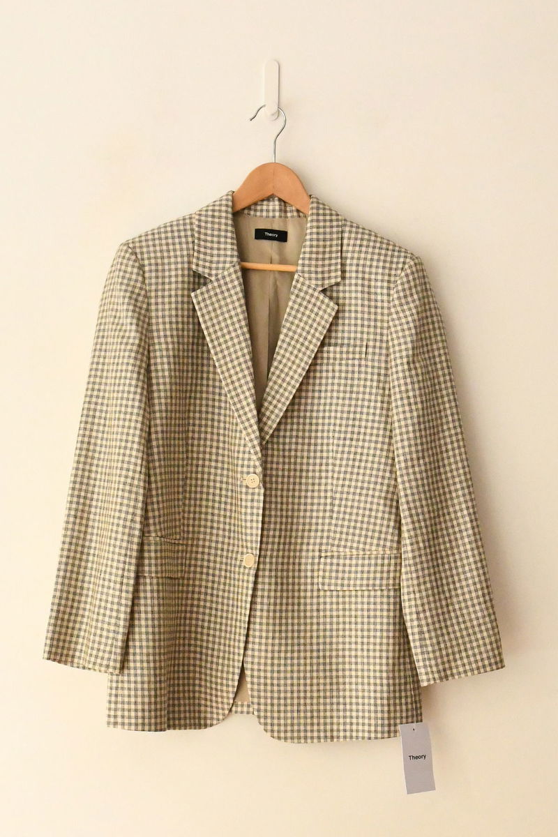 Perfectly suited for the warmer months, Theory's checked blazer is made from a breathable linen-blend sourced from an Italian fabric mill. It's designed for a slightly loose fit with sharp notch lapels and padded shoulders for structure. Complete the set with the matching pants.