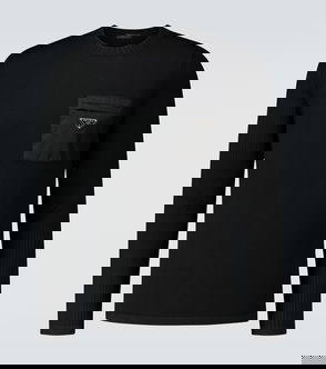 Knit wool sweater. Rib knit crewneck, hem, and cuffs.