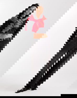 It's designed for a cropped fit with a double-breasted front and buckled belt inspired by classic trench coats. Wear yours with tailoring to look effortlessly put-together.