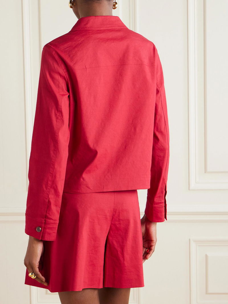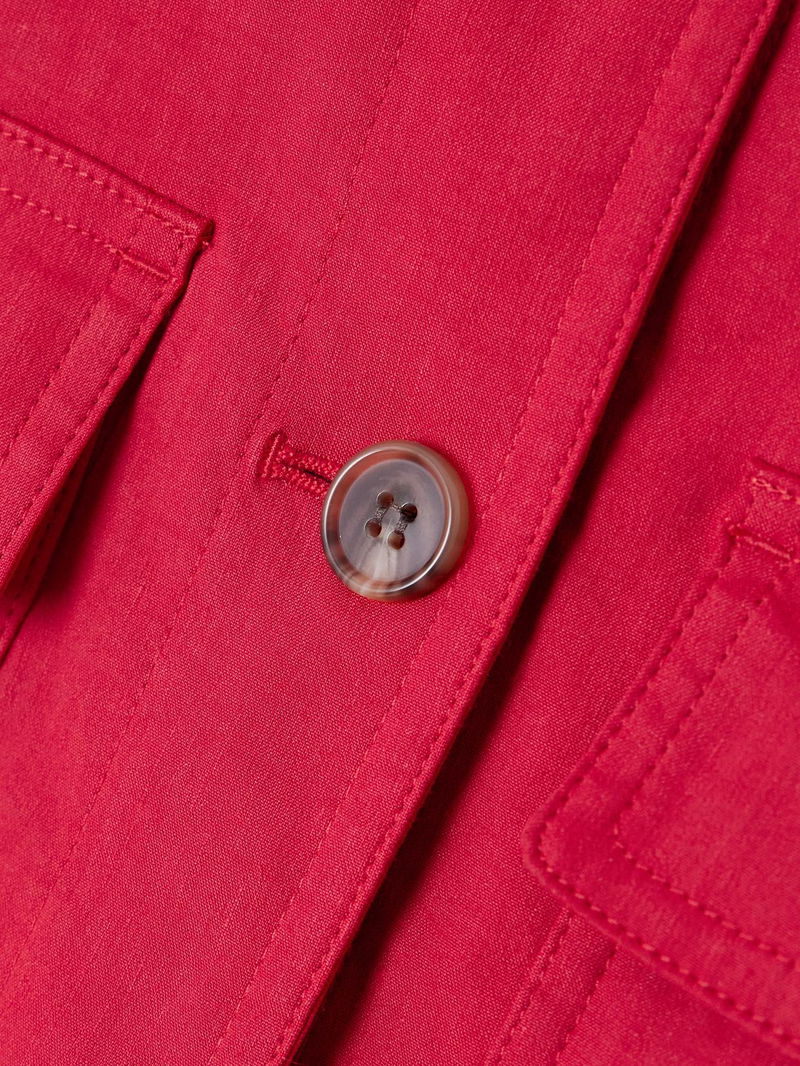 Theory's collared jacket blends sophistication with utilitarian design elements. Made from breathable linen blend, it has a slightly loose fit and trio of sizable flap pockets. Wear yours as part of a set with the matching shorts in the same vibrant red shade.