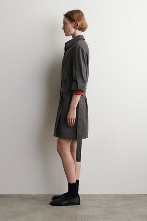 Shirt dress, Linen-blend, Pleated, Gathered, Concealed hook and zip fastening at side, Partially concealed button fastenings along front, Partially lined, Mid-weight, stretchy fabric.