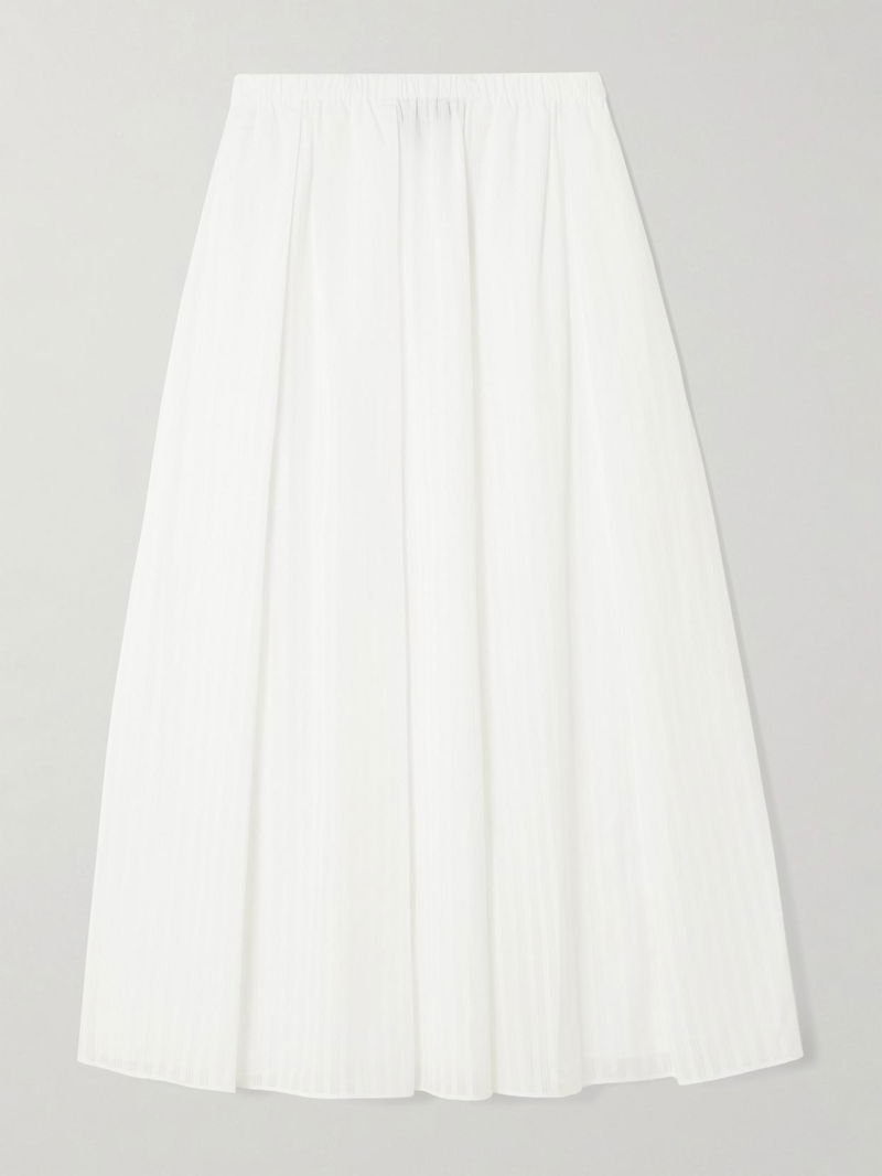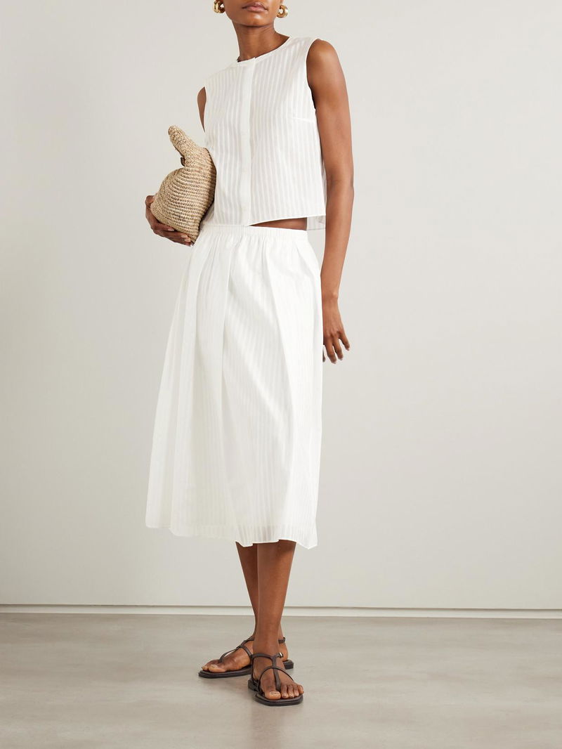 Theory's skirt is such a gorgeous starting place for so many summer outfits. It's made from crisp cotton-poplin patterned with tonal stripes and has gentle pleats that add volume to the silhouette. Wear yours with everything from tanks to vests and polo sweaters.
