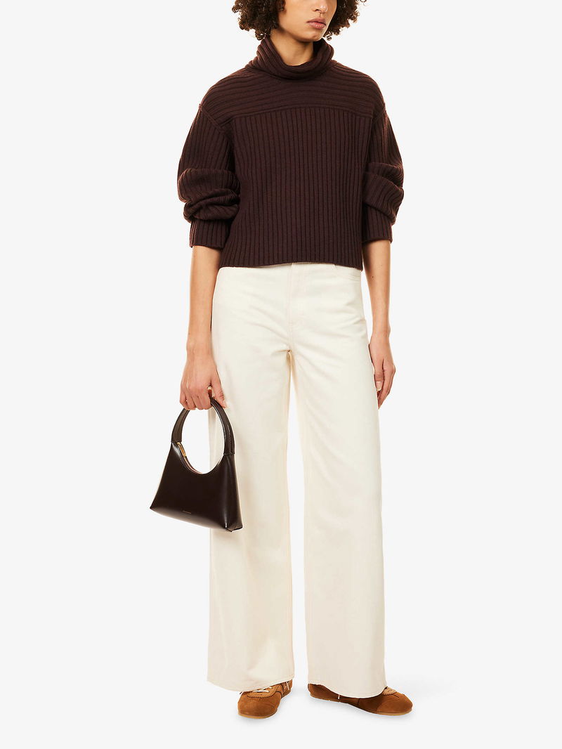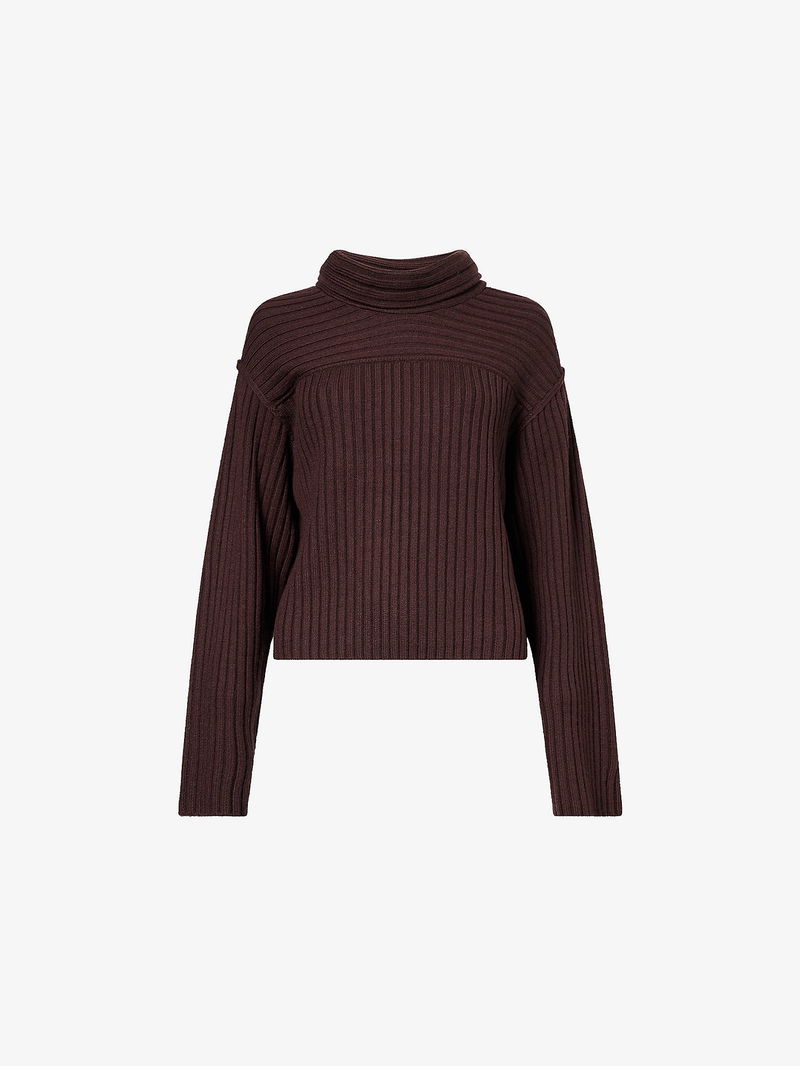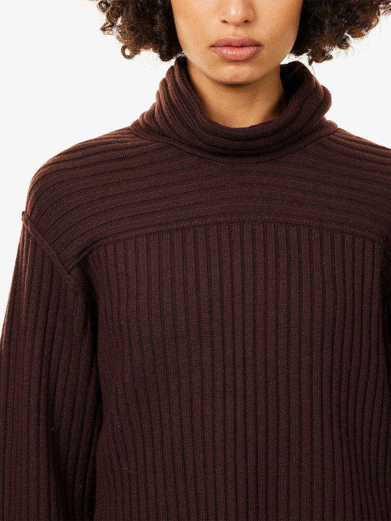 Ribbed Crop Turtleneck Merino Wool Jumper