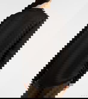 Blouse, Satin, Sequins, Snap-fastening cuffs, Concealed snap fastenings through front, Mid-weight, heavily embellished fabric.