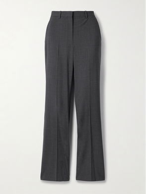 Straight-leg pants, Crepe, Wool-blend, Pressed creases, Two side slant pockets, Two back welt pockets, High-rise cut, Concealed hook, button and zip fastening at front, Mid-weight, stretchy fabric.
