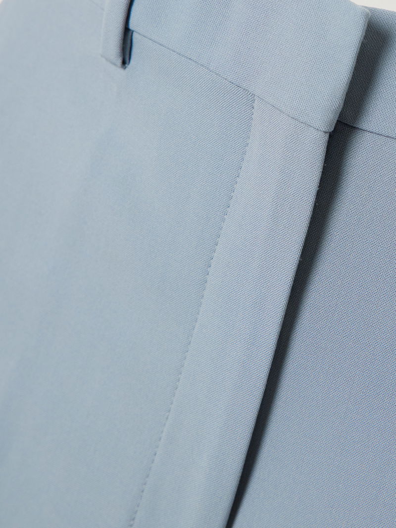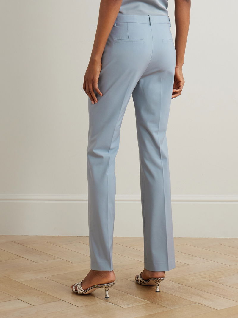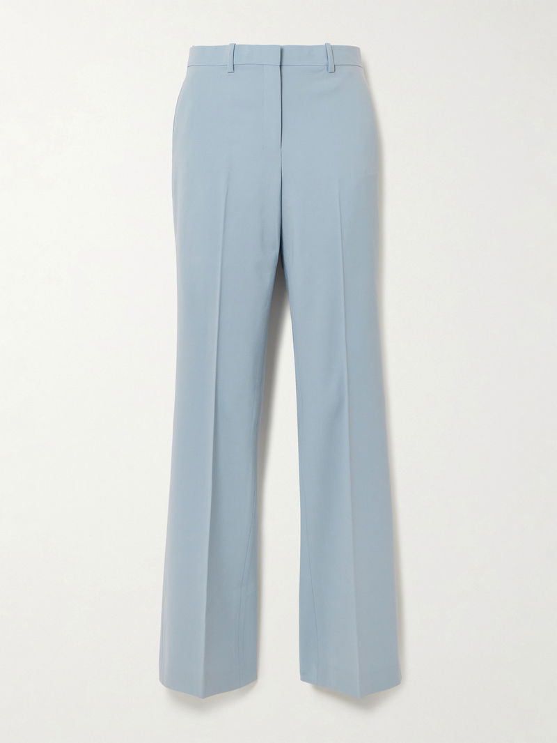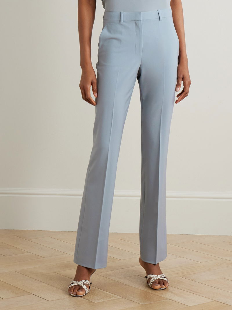 Smart, versatile tailoring like these pants are Theory's specialty. Made from a light-blue wool-blend, they have a straight-leg shape that kicks out slightly.