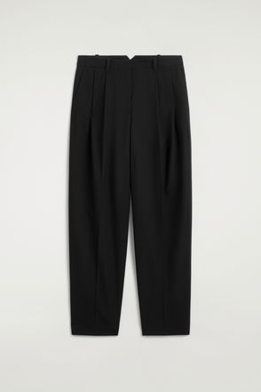 Tapered pants, Mélange, Wool-flannel, Back welt pocket, Zipped pockets, Belt loops, High-rise cut, Concealed hook, button and zip fastening at front, Mid-weight, non-stretchy fabric.