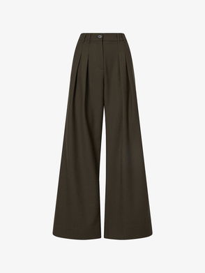 Wide-leg pants, Wool-flannel, Pleated, Back welt pockets, Side slant pockets, High-rise cut, Concealed hook, button and zip fastening at front, Mid-weight, non-stretchy fabric.