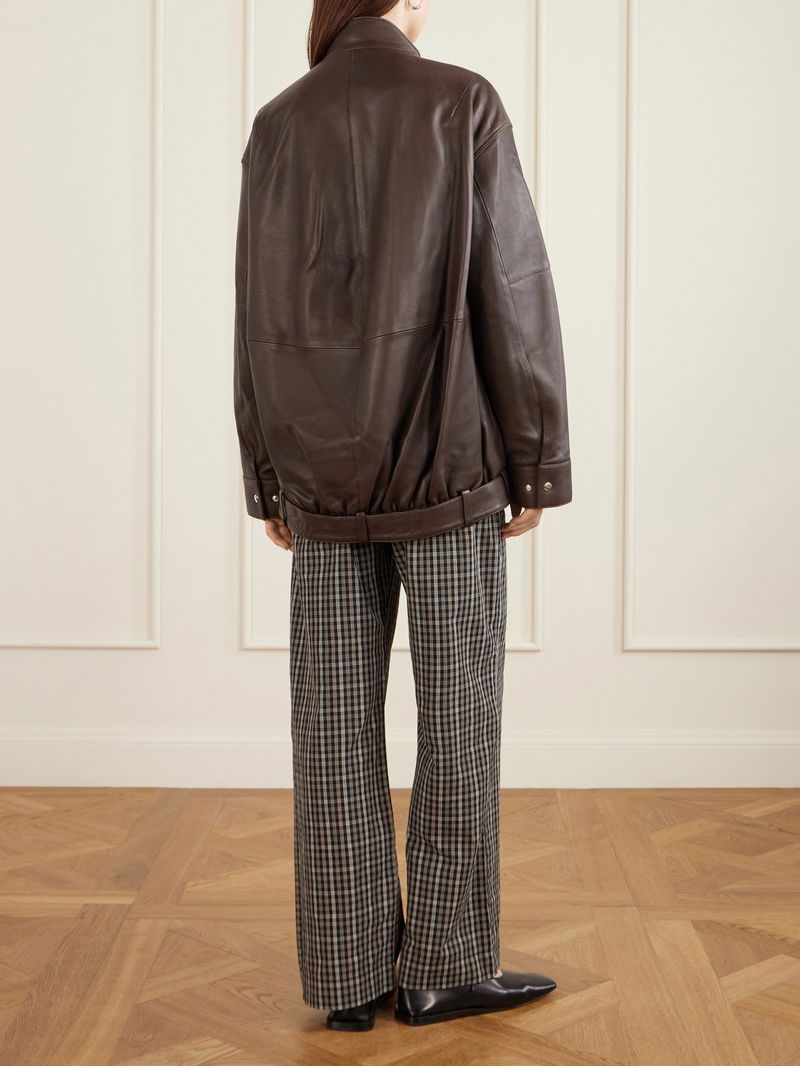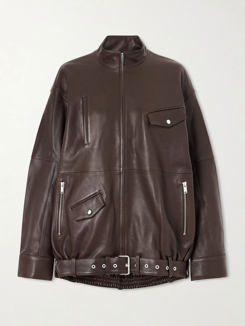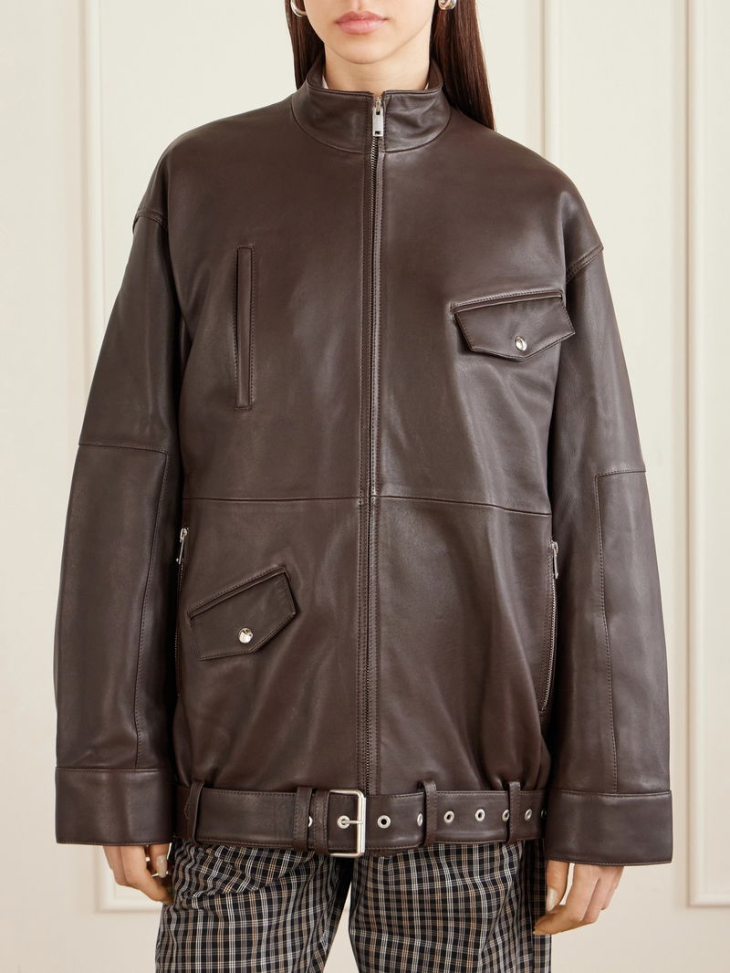 Tibi's jacket is made from buttery-soft leather in a neutral brown shade. Designed for a relaxed fit, it has asymmetric pockets and a belted hem.
