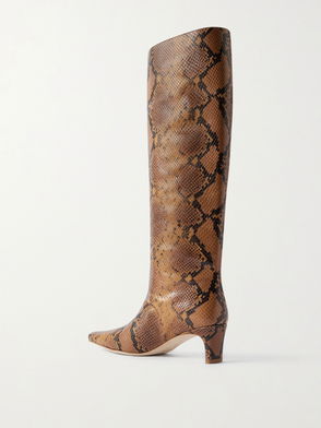 PThese modern Bronson boots are by TIBI. With a bluish-grey minimalist design, they are distinguished by their pointed toe and small, contrasting square heel. A pair with unparalleled elegance that can be worn with an array of looks, including short pleated skirts or leather trousers.