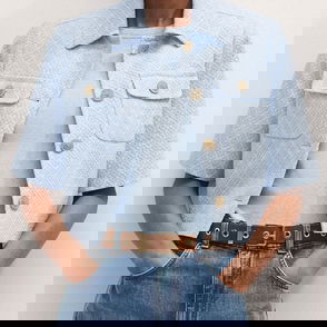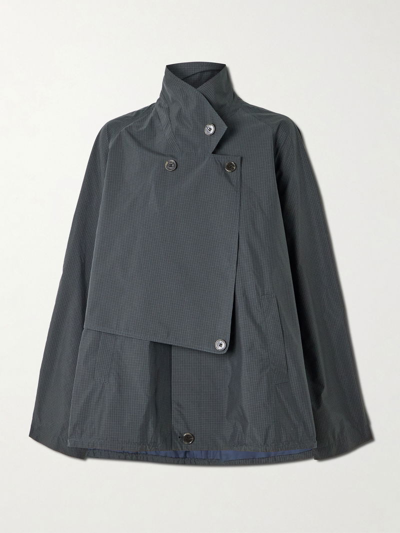 Tibi's 'Charles' jacket reimagines the classic trench through a modern lens. It's tailored from subtly checked cotton-blend and has convertible lapels that can be buttoned as a high collar. Style it with everything, from tailoring to denim.