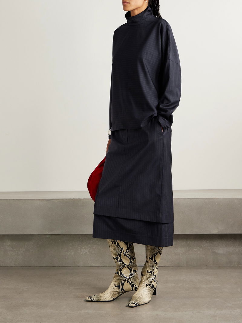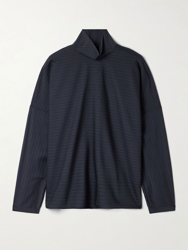 Mier Pinstriped Wool-Blend Turtleneck Top